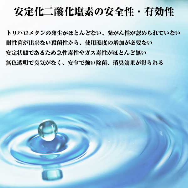 安定化二酸化塩素を主成分とした除菌剤。